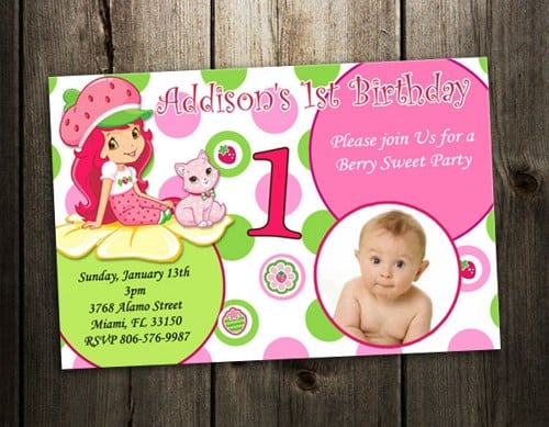 Strawberry Shortcakes 1st Birthday Invitation Free