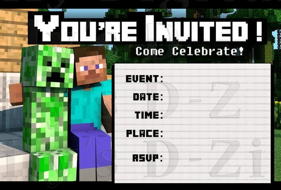 Blank Birthday Invitation Template Minecraft Free
