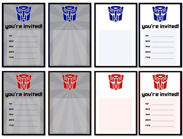 Transformer Invitation Template Printable