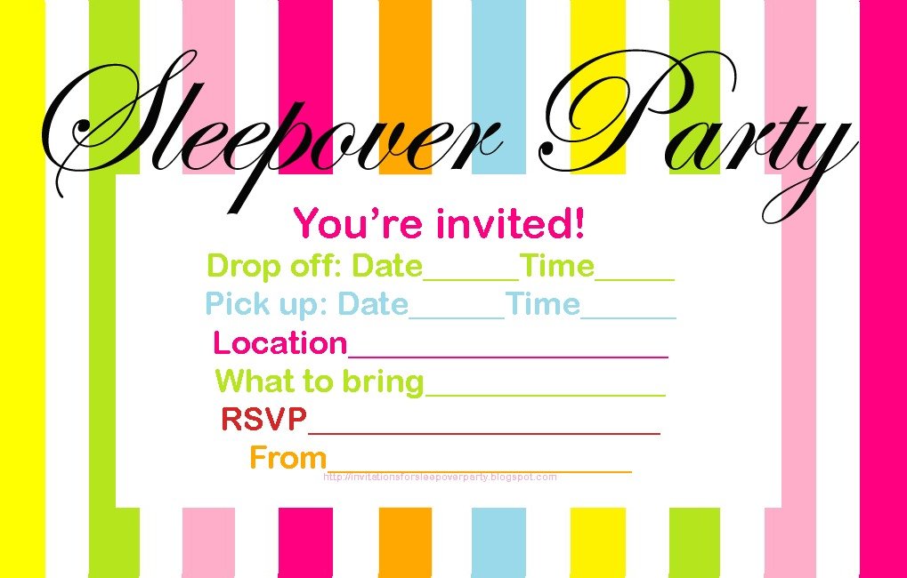 Blank Sleep Over Invitations For Girls