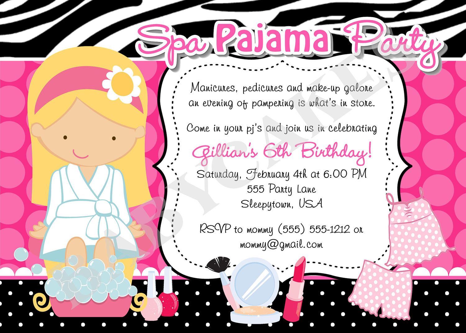 Spa Sleepover Invitations